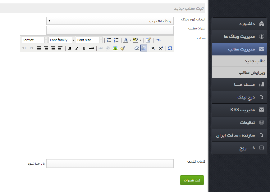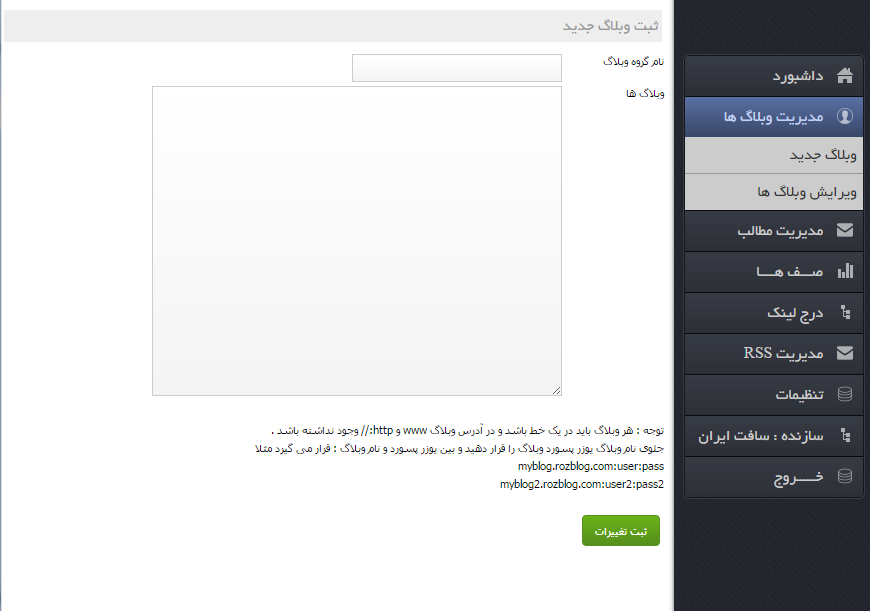 1- ساخت گروه های وبلاگی مختلف ( در هر گروه می توانید به هر تعداد وبلاگ از سیستم های مختلف وبلاگ دهی وارد کنید )