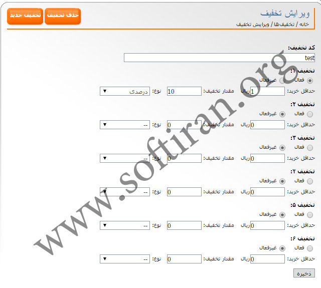 سپس به قسمت مدیریت رفته و در تب تخفیف ها یک تخفیف جدید تعریف کنید و استفاده کنید.