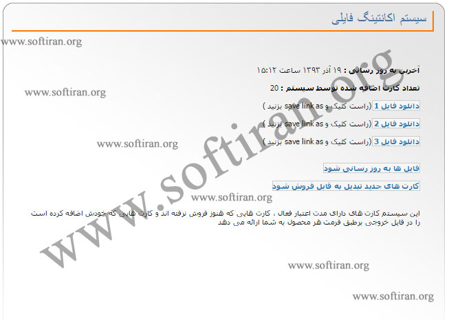 نکته : این ماژول های کارت فعال ( یعنی مدت زمان اعتبار نگذشته باشد ) و کارت هایی که فروش نرفته است را خروجی میدهد .